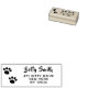 Carimbo de borracha personalizado com pegada de pata de gato para uma mãe de gato, dona de gatinho e todos os amantes de animais de estimação. Decorado com um par de pegadas de pata estilizadas e combinado com um nome em letra cursiva bonita e uma impressão de endereço agradável. Mostre seu amor por gatos e decore sua correspondência com este carimbo de borracha personalizado divertido e pequeno.