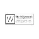 Este carimbo de endereço personalizado apresenta um design profissional e sofisticado. Ele apresenta um nome de família de exemplo seguido do endereço residencial da família. O carimbo pode ser personalizado para incluir seu próprio nome e endereço. Uma grande inicial de monograma é colocada à esquerda, que você pode mudar para incluir a inicial da sua própria família. Uma linha decorativa é colocada entre o nome e o endereço e o carimbo é enquadrado com uma borda retangular fina.