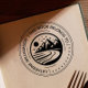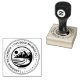 Elegante carimbo personalizado de biblioteca apresenta seu carimbo redondo com montanhas rústicas e o nome do proprietário do livro em letras modernas, circundado pelo seu carimbo de ex-libris dentro de uma borda dupla arredondada. Este carimbo também é perfeito para professores, crianças ou amantes de livros.