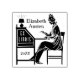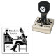 Este selo de borracha personalizado tem uma aparência de estêncil vintage. A silhueta de uma mulher se senta em uma mesa de escrevendo com caneta levantada enquanto uma lâmpada brilha ao lado dela. A mulher parece ser do século XIX ou início do 20. A mesa diz, "Ex Libris", que significa "dos livros / da biblioteca de" em latim. Use a modelo para adicionar seu nome e o ano - ou apagar qualquer texto que não desejar na placa do livro. Veja mais designs para amantes de livros na loja BookParadise.