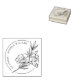Carimbo de madeira Ex Libris Floral Botânico com flores desenhadas à mão com elementos botânicos, seu nome em uma tipografia circular à esquerda com uma borda circular fina.