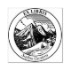 Carimbo Ex libris com desenho de corte de madeira de uma paisagem alpina com montanhas, árvores e neve. Altere o nome para personalizar.
