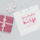 Este carimbo de "Feliz Natal" contém cervejas, árvores, uma mensagem e um nome de família personalizado.