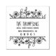 Belo carimbo de endereço floral com seu nome e endereço em fontes encantadoras cercadas por flores desenhadas à mão e verde.