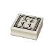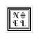 Carimbo de borracha de Natal com uma impressão de texto NOEL divertida e uma bolha de Natal listrada num quadrado listrado.