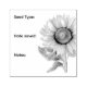 Carimbo de sementes com design de girassol e texto personalizado. Carimbo de madeira, tamanho 2,5 polegadas de quadrado, vem com ou sem manípulo. Selecione uma cor de tinta e use para marcar pacotes de vegetais e flores. O texto de exemplo é "tipo de semente, data salva e notas" e se alinha à esquerda. Alterar a redação, adicionar ou remover espaços e criar um carimbo para todos os tipos de sementes ou uma variedade específica.