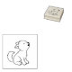 Um filhote de lobo-da-caricatura bonito está sentado em suas assopras e uivos com a cabeça erguida.