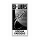 Um design Ex Libris com um motif estilo lenhite/linocut representando um foguete orbitando um planeta. Inspirado pelas imagens soviéticas da exploração espacial dos anos 60 e 50