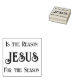 Tinta cristã de Natal para envelopes com o texto "Jesus é a razão da estação". O carimbo de madeira quadrado tem apenas texto e é perfeito para adicionar à parte traseira dos envelopes de cartão ou imprimir em papel de embalagem. As almofadas de tinta vêm em muitas cores. Para manter a redação atual, escolher apenas carimbos quadrados.