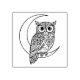 Carimbo De Borracha Luna Owl Line Art com Moon Crescente