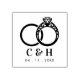 This rubber stamp features an exquisite and luxurious design of two rings, a classic symbol of wedding and commitment: an elegant wedding band paired with a richly ornamented engagement ring. The engraving stands out for its high level of detail and refined aesthetic, evoking matrimonial union through a sophisticated, timeless, and carefully balanced style. The composition conveys exclusivity and romance, making this motif a perfect visual emblem for wedding celebrations.