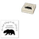 Este livro redondo da biblioteca apresenta uma silhueta de um urso, seu nome personalizado em uma simples tipografia acima, e texto personalizado: este livro pertence à biblioteca de, na escrita moderna, curvando graciosamente ao redor.