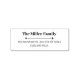 Minimal custom family address stamp designed for everyday home use. Features the family name, address, and phone number in a clean, easy-to-read layout. Ideal for envelopes, personal mail, and home organization with a simple, modern style.
