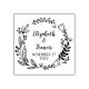 Este carimbo "Salvar a data" contém um quadro de flores/ramos com nomes de casal e data.