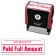 Este design de carimbo simples e básico apresenta as mensagens "Quantia de Cheio Pago" e uma linha onde uma data de pagamento pode ser escrita. Talvez possa ser usado para indicar que uma fatura ou fatura foi paga em cheio.