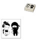 Ninja adorável vestida de preto está brilhando timidamente enquanto segura um coração de papel origami atrás de suas costas e olha para uma linda garota guisha de vestido kimono.