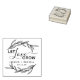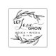 Carimbo de borracha para casamento com folhas de louro emoldurando "deixe o amor crescer" em fonte moderna e cursiva.