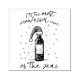 Uma design de Natal divertida e alegre mostra uma garrafa de vinho embrulhada em luzes de Natal festivas e tocada com um chapéu de Papai Noel. O texto escrito à mão diz brincalhão, "É o vinho mais maravilhoso do ano." Esse design é oferecido em uma variedade de produtos.