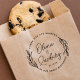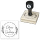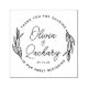 Carimbo de borracha circular rústico elegante apresenta folhagem em forma circular com letras curvas e nomes em roteiro no meio com uma data.