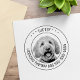 Foto personalizável de animal de estimação e carimbo de texto. Observe que talvez seja necessário ajustar as informações adicionando ou excluindo alguns caracteres para fazer o texto alinhado corretamente.