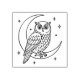 Carimbo De Borracha Owl on Crescent Moon with Stars Line Art