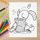 O guaxinim está cavando através de uma lata de lixo. Sua cabeça está escondida na lata, apenas seu corpo e conto se destacando. Uma tampa amaldiçoada, algumas bolsas de lixo, e ossos de peixe estão perto do recipiente. Adequado para coloração.