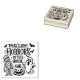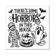 Pequenos Horrores - Bonitos, Assustadores e Cheios de carimbo de personagem Um trio de personagens do Dia das Bruxas - uma múmia, um jack-o-lanterno, e um fantasma - se reúnem sob a frase viscosa "Há alguns horrores nesta Casa", cercado por morcegos fluidos. Com ousadia e energia divertida, o design mistura-se à diversão assustadora com o talento festivo, celebrando o caos e a beleza do Halloween numa cena encantadora.