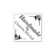 Este carimbo personalizado apresenta bordas decorativas e ricos nos cantos superior direito e inferior à medida que o carimbo é impresso em preferencialmentes em forma de diamante que em quadrado. O centro do carimbo contém a palavra "artesanal" impressa em caracteres elegantes, seguida de um nome de amostra. O nome no carimbo pode ser personalizado para incluir seu próprio nome, nome comercial ou da empresa, ou outra mensagem ou cotação personalizada.