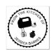 Este carimbo "Da cozinha de" contém uma máquina de assar com nome personalizado.