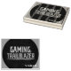 A impressão do selo deixa uma marca clara e nítida, ideal para certificar realizações, prêmios ou reconhecimento especial no setor de jogos. "Gaming Trailblazer" gravado em letras brancas e ousadas ao redor do círculo, significando um espírito pioneiro e liderança no mundo dos jogos. Um círculo negro com um contorno branco, simbolizando a unidade e a interconectividade da comunidade de jogos.