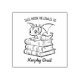 Este selo de borracha apresenta um dragão bebê em cima de livros com um nome personalizado.