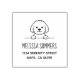 Simple cartoon illustration of a happy poodle mix dog peeking from behind a divider. Only its head and front paws are visible. Customize with your own address.