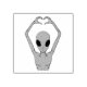 Alienígena verde vibrante formando um coração com braços arqueados contra o preto, misturando o capricho de ficção científica com charme lúdico. Contraste ousado, perfeito para fãs de espaço e looks casuais excêntricos.
