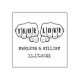 Entregas de festa decorada e envelopes de casamento com este selo de borracha personalizado. Ele tem vibrações punk rock com a mensagem tatuada TRUE LOVE em dois punhos acima do nome da noiva e noiva e sua data de casamento em uma simples fonte de estilo de máquina de escrever.