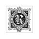 Carta R primeira letra estilo gótico vintage caligrafia desenhada à mão. A letra R do ornamentado está centrada num quadro circular e num quadro exterior quadrado. Embelado com ondas, pontos e linhas decorativas.
