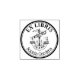 Um design de selo de borracha Ex Libris, em estilo circular a negrito, e um motif Linfário (navio heráldico).