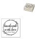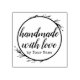 Crie o seu personalizado feito à mão com um selo de borracha amável que inclui ramos de oliveiras Wreath e um círculo negro, com o texto personalizado "feito à mão com amor por" em uma fonte caligráfica elegante e uma fonte rusticária aflita, nome personalizado e texto. Perfeito para o artesanato, lojas orgânicas e respeitadoras do ambiente, fazendas, reservas, casamentos, presentes personalizados. Tinta inclusa, qualquer cor disponível. Sem ordem mínima.