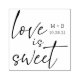 Desenho elegante de caligrafia moderna "Amor é Doce". A fonte do nome do casal e a data são personalizáveis.