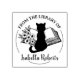 Este selo de borracha "Da Biblioteca De" apresenta um livro, flores, um gato e um nome personalizado.