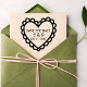 Simple Heart Save the Date Wedding rubber stamp. A sweet Save the Date rubber stamp featuring a bold heart design for a romantic wedding announcement. Perfect for stamping envelopes, invitations, and stationery, this design adds a warm, personal touch to your wedding planning. Customize with your initials and wedding date for a simple yet meaningful impression guests will love.