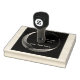 Texto do logotipo Imagem da madeira Borracha Carimbo Carimbo Carimbo Nome do tipo de letra com texto branco Orientação da cor é Horizontal e do tipo de alça Alça de madeira Cor Preto do suporte de tinta, Tamanho 4x5