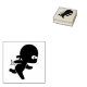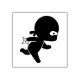 Ninja de desenho animado bonito está correndo enquanto segura uma arma estrela lançadora.
