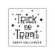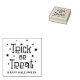 Carimbo de borracha do Halloween, com o texto: "Trick or trata" rodeado de estrelas. Texto personalizável "Feliz Dia das Bruxas" abaixo. Utilização para embalagens de produtos, artesanatos e reservas de sucata, etc.
