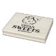 Este selo de borracha "Vegan Sweets" contém um cookie e um nome comercial personalizado.
