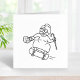 Uma ilustração humorística de uma senhora idosa num vestido com bengala, óculos e um saco de rede num conselho de patinação.
