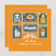 Cartões de convite perfeitos de halloween com o design retro vintage de selo postal com uma casa assombrada por cogumelos fofinhos, morcego divertido, abóbora laranja que o torna tão memorável quando todos os hóspedes recebem convites para festas vintage de halloween. Definitivamente uma maneira tão boa de convidar sua família e amigos mais próximos para comemorar esta festa de festas da época assustadora do halloween com sua família com nossos cartões de convites para o halloween, retro, cor de laranja assustadora. Fácil personalização com qualquer texto que você se sinta adequado com suas vibrações do Dia das Bruxas!