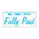 Este design de carimbo básico apresenta as mensagens "Totalmente Pago" e uma linha onde uma data de pagamento pode ser escrita. Ele poderia ser usado para marcar uma fatura ou fatura como tendo sido paga no cheio.