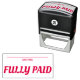 Este design de carimbo básico contém as mensagens "TOTALMENTE PAGO" e uma linha onde uma data de pagamento pode ser escrita. Pode ser usado para marcar uma fatura ou fatura como tendo sido paga.
