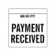 Este design de carimbo simples e básico contém as mensagens "PAGAMENTO RECEBIDO" e uma linha onde pode ser escrita uma data de pagamento. Pode ser usado para marcar uma fatura ou fatura como tendo sido paga.