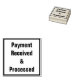 Este design de carimbo contém a mensagem "Pagamento Recebido e Processado". Ele poderia ser usado para marcar uma fatura ou fatura como tendo sido paga no cheio.